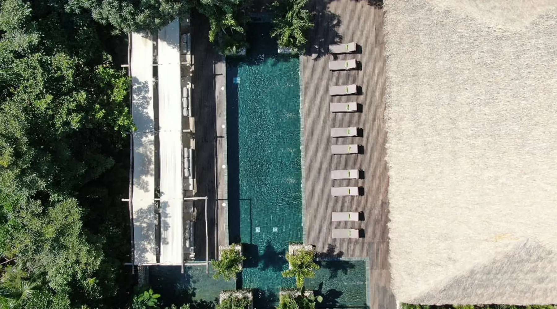 Piscinas privadas por unidad habitacional, integradas a cada suite, con sistemas compactos de filtración, control automatizado y diseño funcional que respeta la estética arquitectónica del hotel.